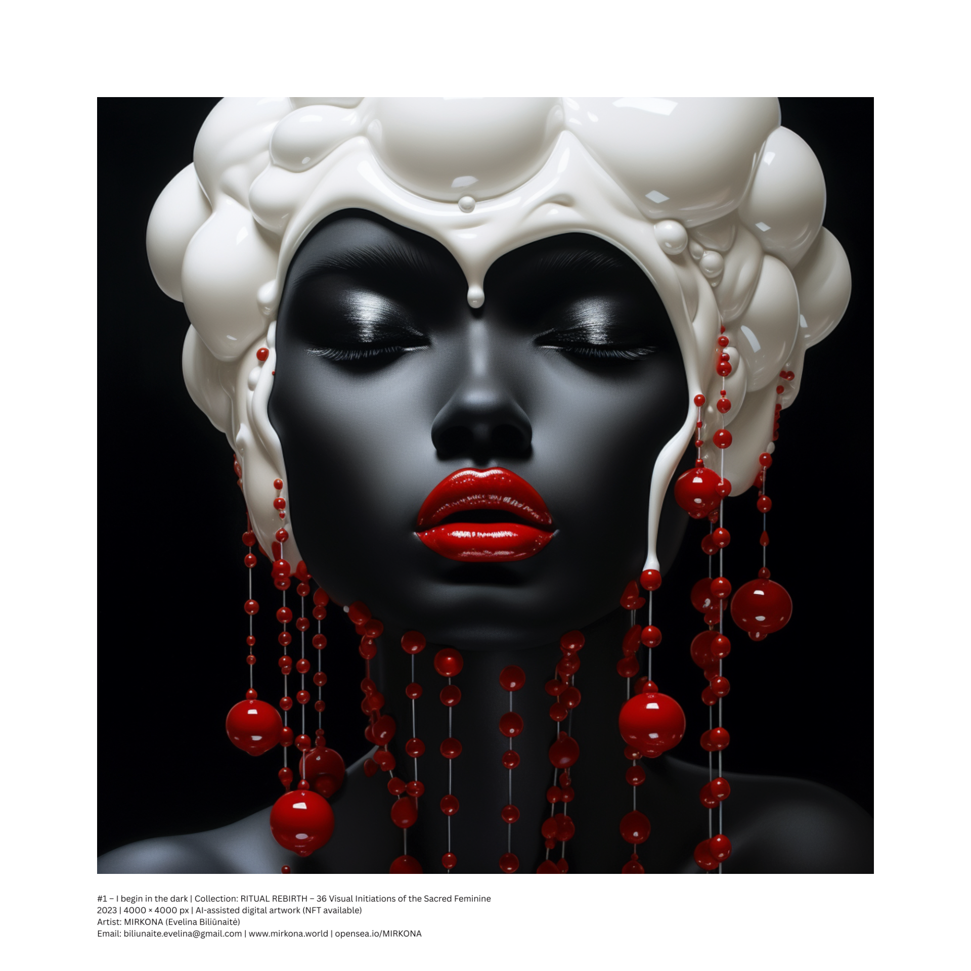 This artwork is available for purchase here: https://opensea.io/item/matic/0x904fd75d778325a59b663d56b2aa8e678319c1d7/9 MIRKONA – I Begin in the Dark (2023)