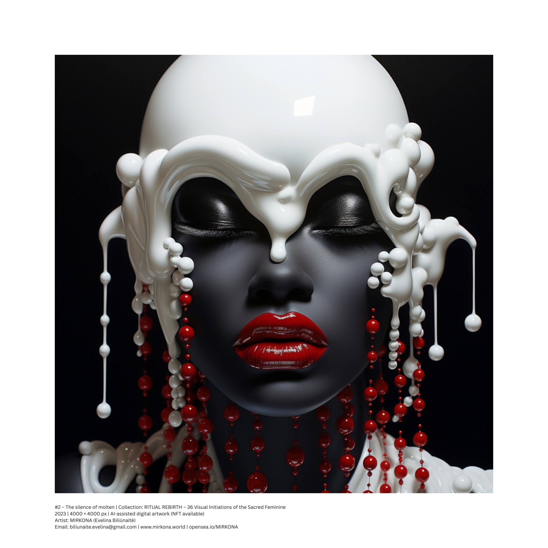 This ritual portrait is a symbolic gateway – a molten moment of surrender and stillness – offering a vision of transformation through sacred art.